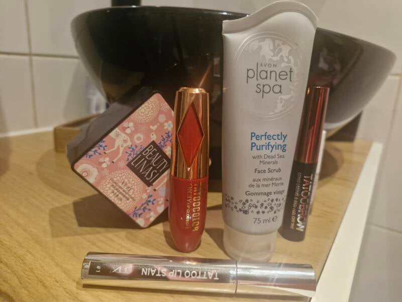 Pod makijaż nakładam płynną hennę na brwi i usta zakupioną na Temu za parę złotych - TATOOCOLOR i TATOOBROW, która sprawia, że nawet jak zliżemy szminkę to i tak kolor pozostanie. Zanim położę puder to nakładam mocno kryjący podkład z Temu (około 22 zł.) Beauty Linasi I wtedy już nakładam mocniejszy makijaż wieczorowy.